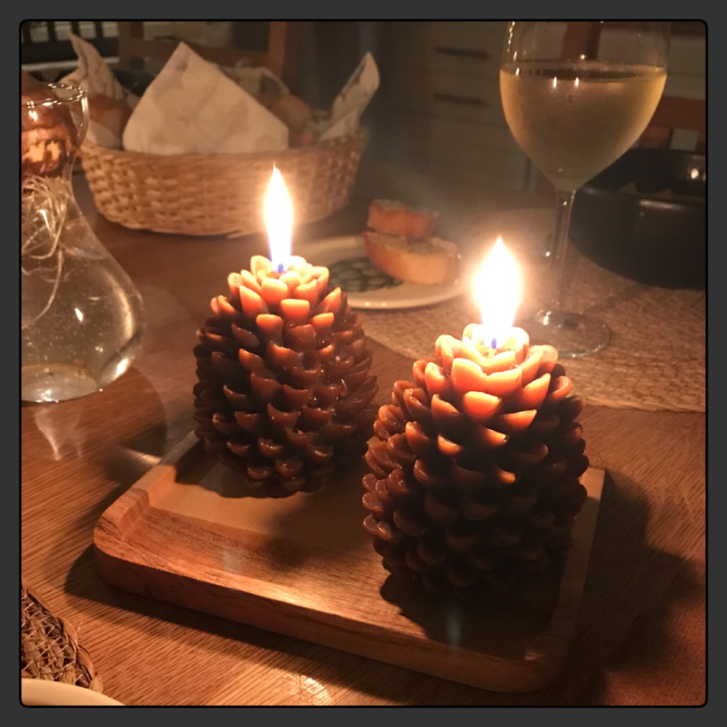 På bilden nedan har jag, tidigare i veckan, dukat med mina fina kottar jag köpt på Granit där Alma jobbar på helgerna. Tycker de är underbara. Doftar lite gör de också.