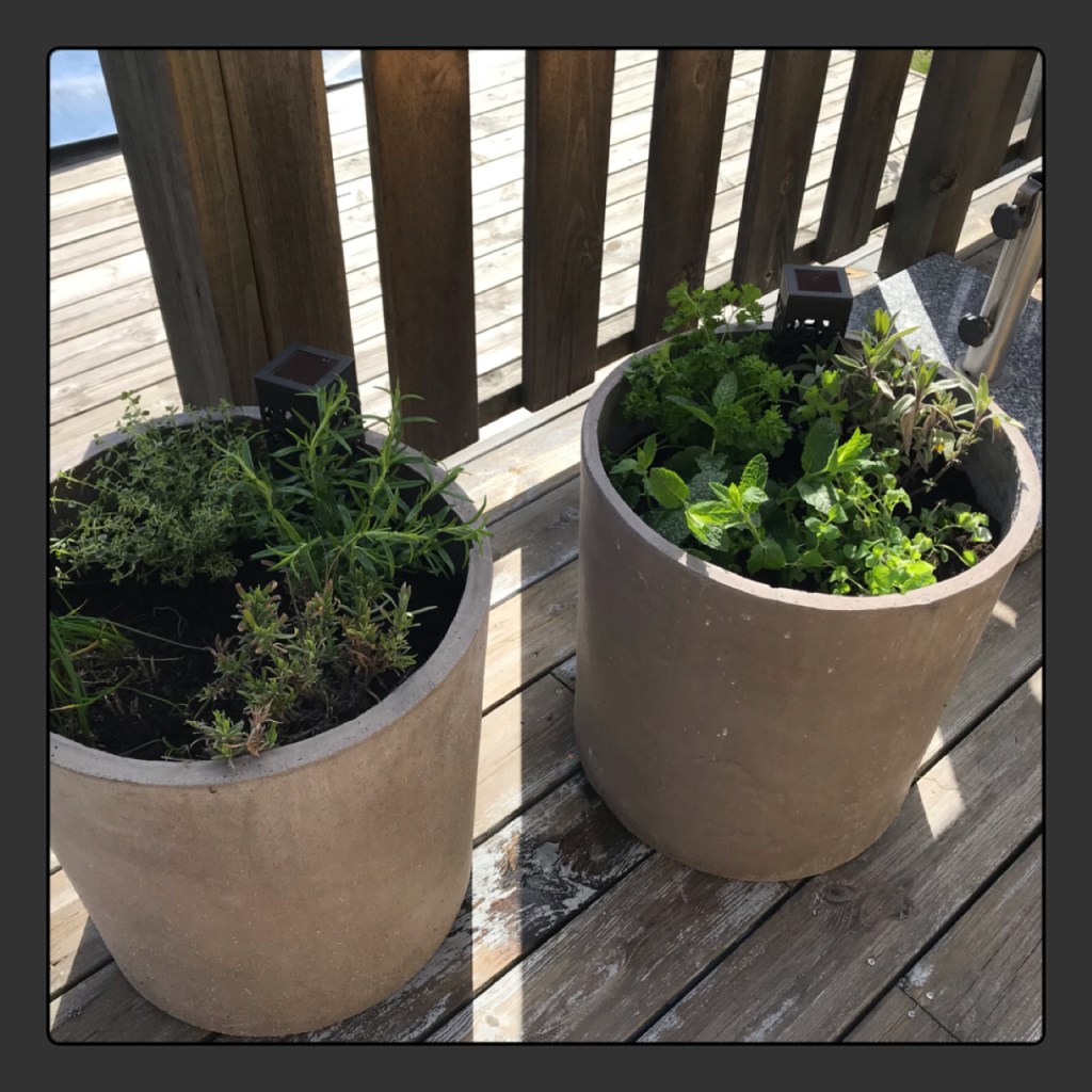 I går var jag i alla fall ute lite. Planterade lite blommor och nya kryddkrukor.